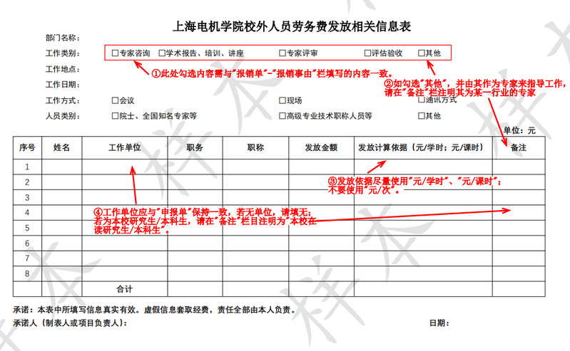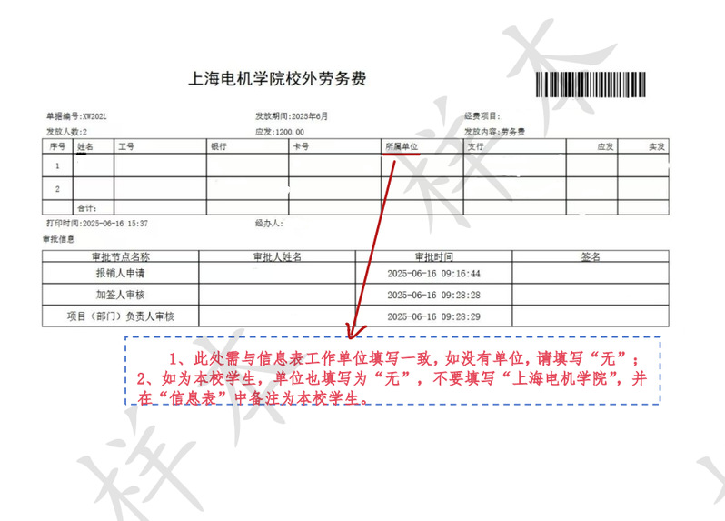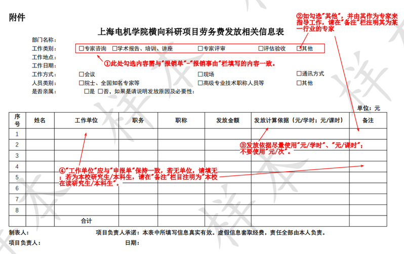 请问什么是劳务费? 劳务费是指支付给提供劳务服务非工资、薪金类的劳务报酬所得; 1、包括科研项目劳务费; 2、各类学术报告、讲座、专业培训、专家咨询及评审等业务劳务费; 3、学校职能部门组织的各类鉴定、指导、命题、考试、阅卷、检查、答辩等工作的劳务费。 一、报销劳务费需提供的材料: 1、*用款申请单 线下用款申请单 线上用款申请单 2、*校内/校外劳务费申报单 线下申报单 线上申报单 3、横向/非横向科研项目劳务费发放相关信息表 仅发放校外劳务费时,需附劳务费发放相关信息表 非横向科研项目发放信息表 横向科研项目发放信息表 4、临时聘用人员备案表 科研项目发放校外劳务费,除参与项目研究的教职工、研究生、博士后、访问学者之外,项目临时聘用的校外人员需附临时聘用人员备案表。 备注: 1、标注 * 为报销必备材料,其他材料视具体情况而定。 二、劳务费发放标准 劳务费发放标准(横向) 劳务费发放标准(其他) 三、注意事项 1、信息表勾选工作类别为“专家咨询/专家评审”,报销单报销事由需填写一致。 2、信息表人员类别勾选为“其他”的,若由其作为专家来进行指导,建议备注其在某一行业为专家。 3、信息表发放计算依据需要填写发放金额的计算过程,例如:800元/天*3天=2400元 或300元/学时*3学时=900元。文件上发放标准为**元/学时的请尽量按学时数填写,不要按天/次填写。 4、申报单所属单位需与信息表工作单位填写一致,如没有单位,都填写无;如为本校学生,单位也填写为无,不要填写为“上海电机学院”。 5、信息表需规范填写,各栏目不能有空白,没有请填写无。 6、备案表项目编号需与实际报销项目一致,备案日期需在工作日期前。 7、自2025年5月1日起,薪资平台每月申报截止日为每月20日。 四、办理流程 上海电机学院官网→智慧校园融合门户→应用中心→财务系统→薪资申报→选择“校外劳务”/“校内劳务”-“创建”单据-填写好申报信息→选择“是否走线上审批签字流程” ① 线上审批→附件栏上传上述材料3(必须上传)、材料4(视条件上传)→线上审批签字(提前完成个人电子签章认证:企业微信APP-电子签章系统)→财务审核完成 ② 线下审批→填写打印纸质件→签字→投递至临港校区行政楼财务大厅/闵行校区办公楼财务处→财务审核完成 (提示:鹤壁市麦克技术服务有限公司为您提供鹤壁市专业的劳务派遣公司、鹤壁市劳务外包公司、鹤壁市最好的劳务派遣公司、鹤壁市劳务服务外包公司、鹤壁市物业管理服务、鹤壁市保安服务、鹤壁市人事代理、鹤壁市人力资源外包服务公司、鹤壁市区域人力资源服务商) |